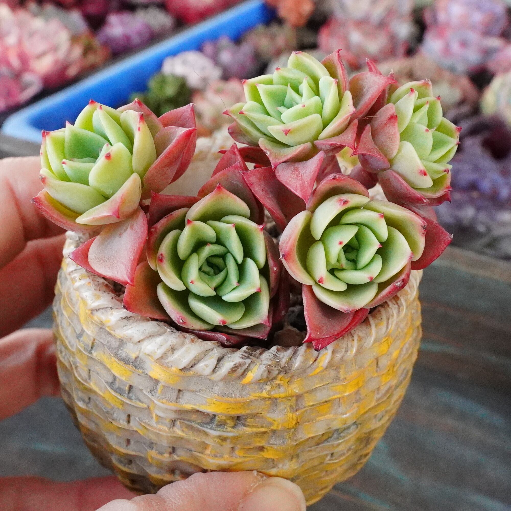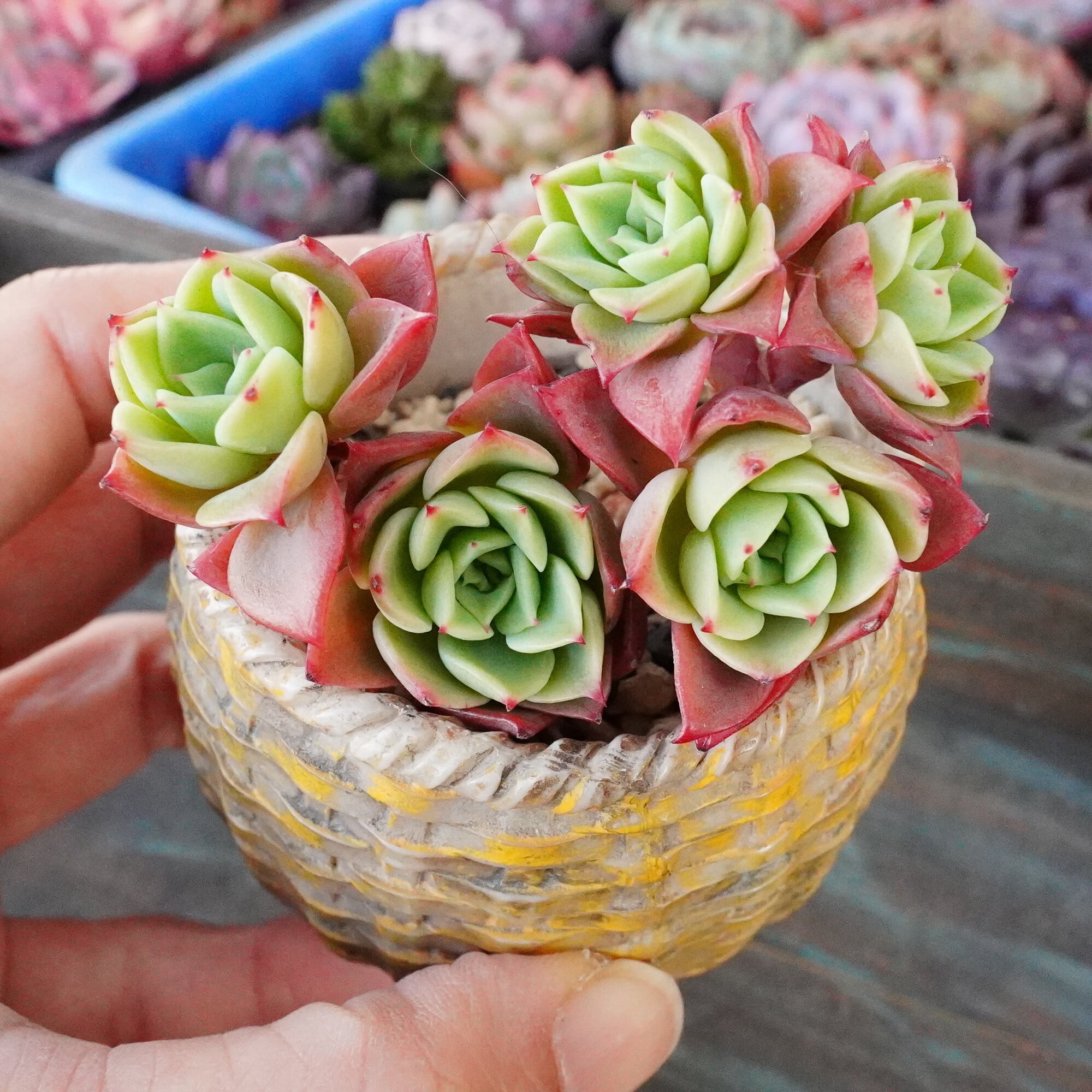 かわいい【ファイブスター 1】エケベリア 韓国多肉 イエローグリーン&ピンク