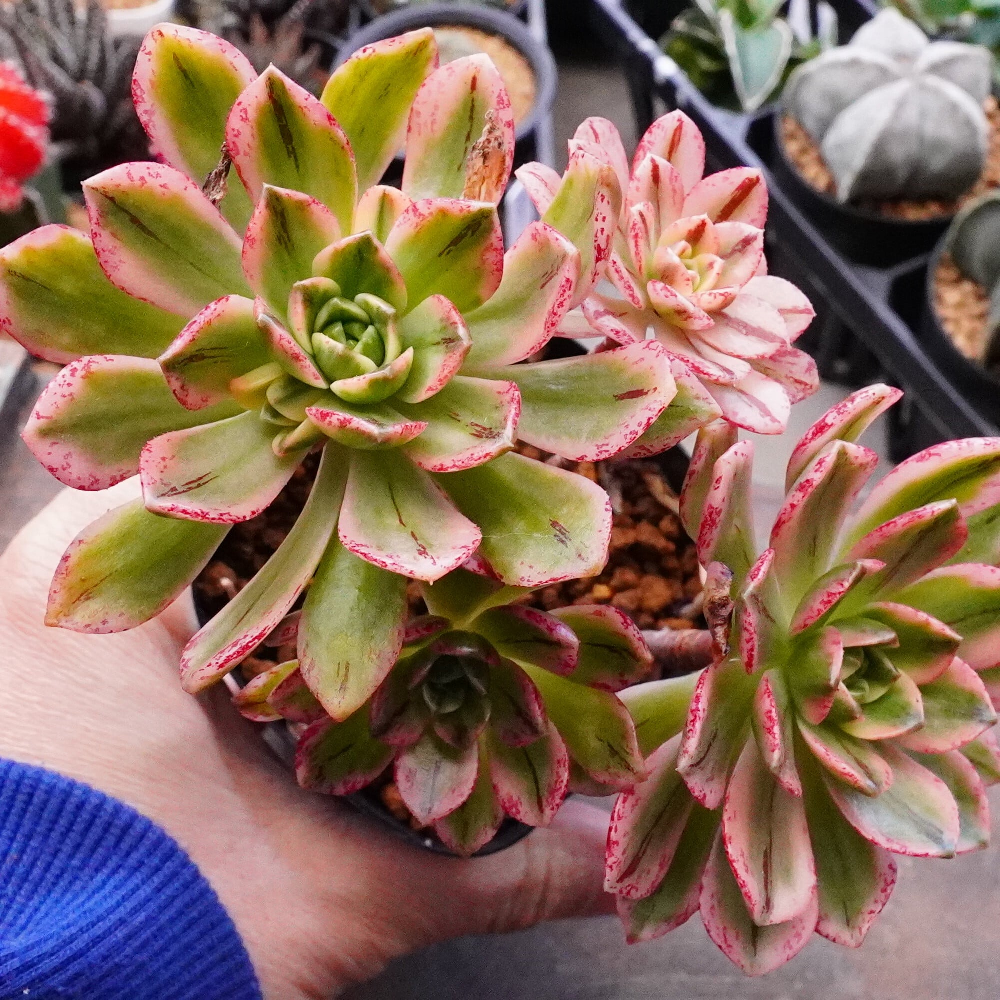 *単頭ではない個体につきましては分離してしまう事もございます。植物はお届けまでの間に多少の色の変化・形状の変化がある場合がございます。写真撮影をした植物の現物販売となります。